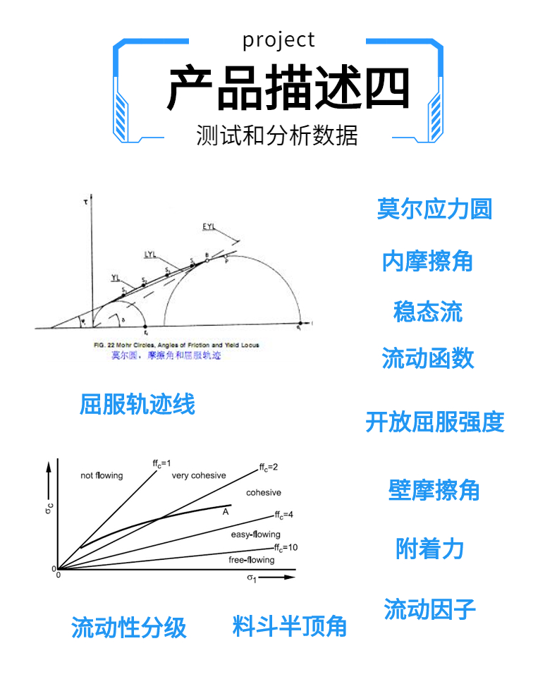 粉體是復雜組合體,具備多種材料性質特性,如固體材料,液體材料和氣體等特性,這些特性的任意組合從而形成應用于個行業的新材料,在粉體的物理特性中,粉體的流動性是非常重要的指標,對粉體的備制表征以及生產工藝,儲存,運輸 ,管道傳輸都會產生影響;所以在粉體的研究中是無法逾越的步驟.