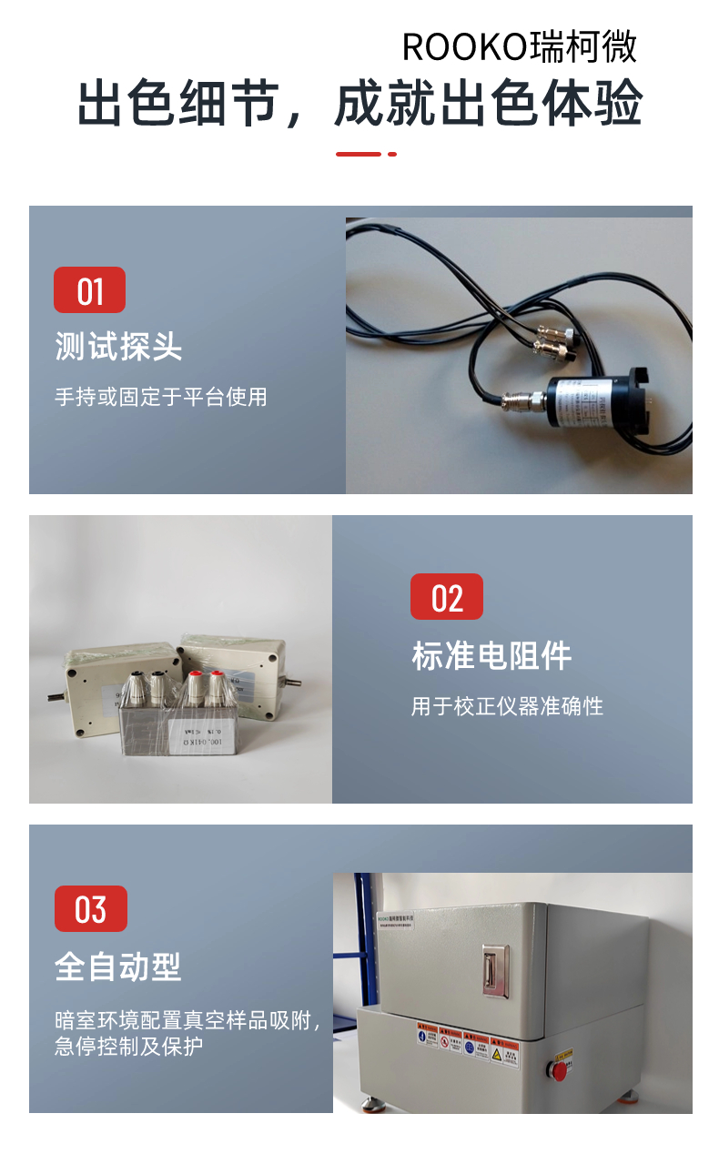 半導體電阻率測試儀的測量范圍通常包括:電阻率,方塊電阻(薄層電阻),以及薄層金屬電阻。數字電壓表是儀器的關鍵部分,其量程和分辨率會直接影響測量結果。恒流源也是儀器的關鍵部分,其輸出電流應可調節。此外,測試探頭的機械游移率也是影響測量結果的關鍵因素。