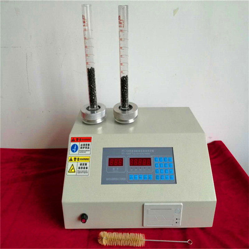 按上述過程測得總體積(V0)。將量筒固定在支架上。使用10 ,500和1250次拍打在同一粉末樣品,并讀取相應(yīng)體積V10 , V500 和 V1250至最近刻度值。當V500和V1250相差小于或等于2ml時, V1250是振實體積。當V500和V1250相差超過2ml,重復增量,如1250次拍打,直至測量值間差異小于或等于2毫升。校驗時沖頭上粉末越少越好。計算出振實密度(g/ml)通過公式m/ VF ,其中VF是最終振實體積。拍填密度一般要求進行復測。指定落差結(jié)果。如果不能用100g試樣,可適當減少試樣量,也可以換成重量為130±16g的100 ml 玻璃量筒(讀出量程至1ml )并固定在240±12g的支架上。變更的測試條件與結(jié)果一起詳細說明。
