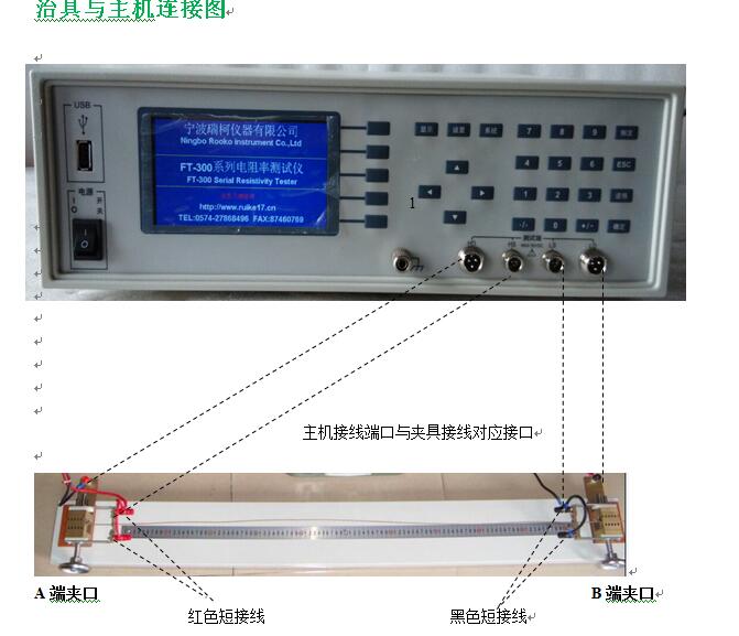 3. 將測試線與主機、夾具如下圖連接好.