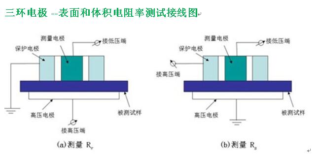 2) 體積電阻:在試樣的相對兩表面上放置的兩電極間所加直流電壓與流過兩個電極之間的穩態電流之商;該電流不包括沿材料表面的電流。在兩電極間可能形成的極化忽略不計。