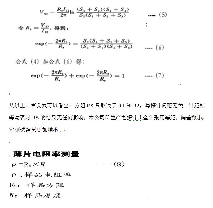 1.雙電測(cè)四探針法測(cè)試薄層樣品方阻計(jì)算和測(cè)試原理如下: