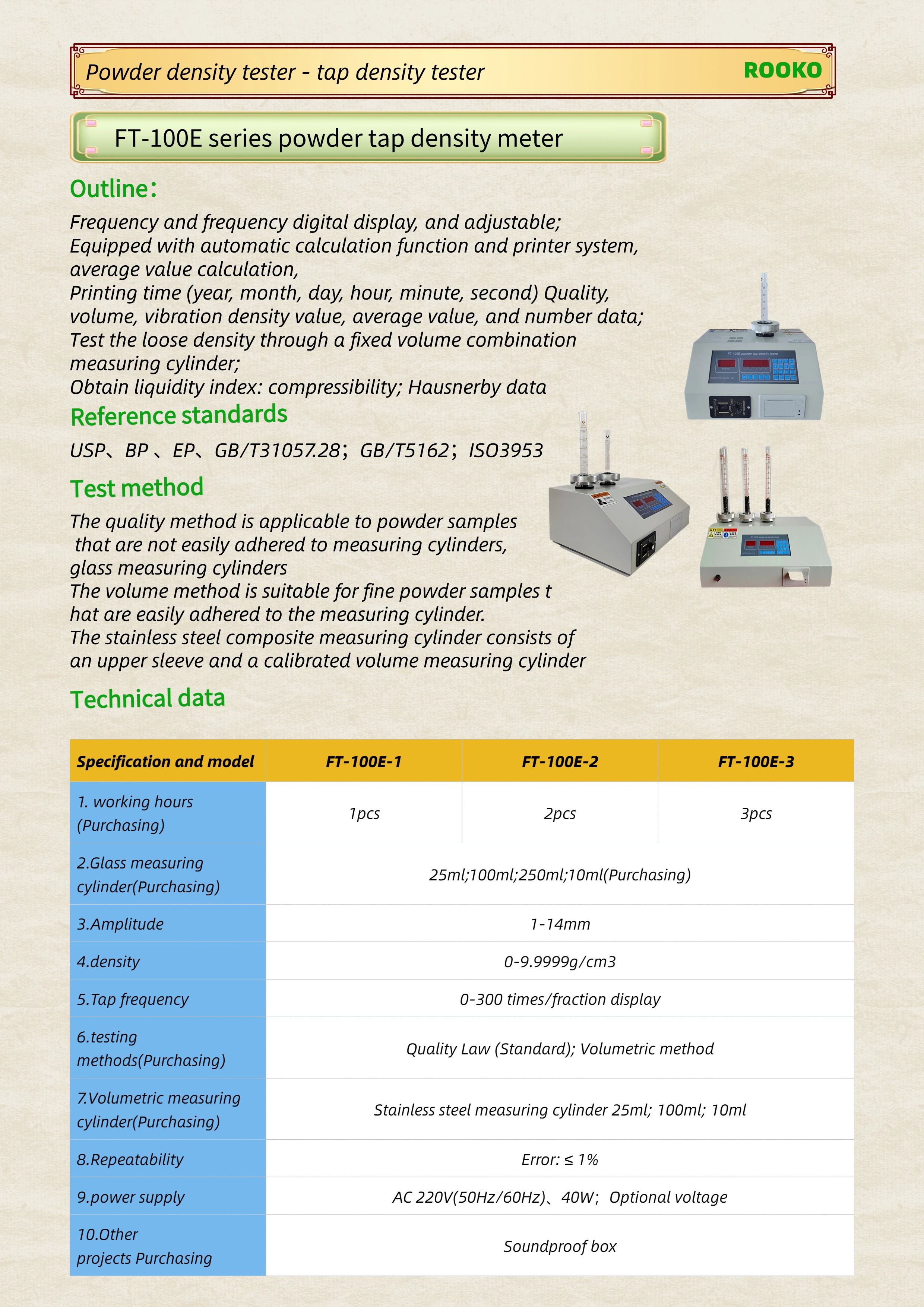 FT-100E series powder tap density meter