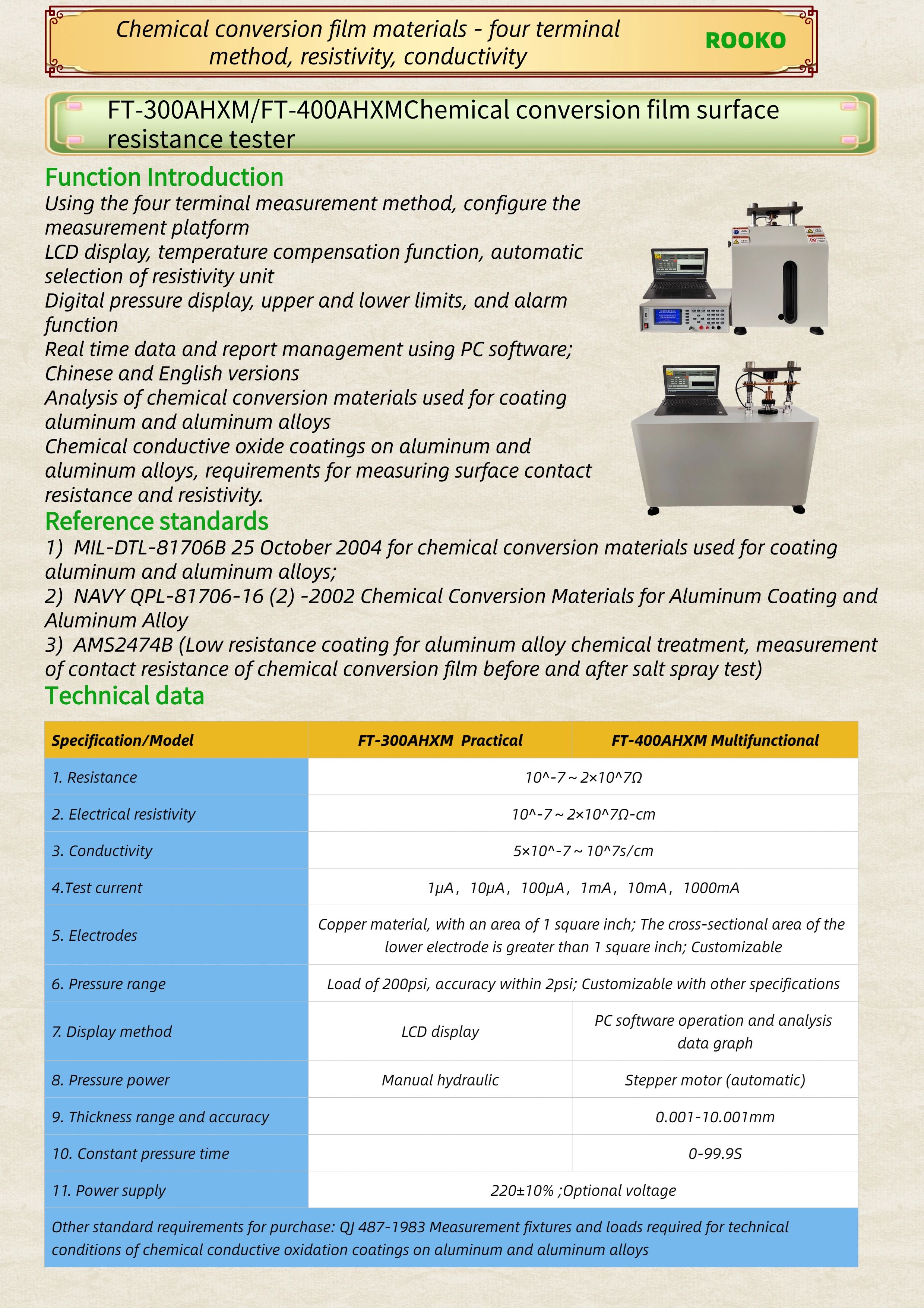 FT-300AHXM/FT-400AHXM Chemical conversion film surface resistance tester